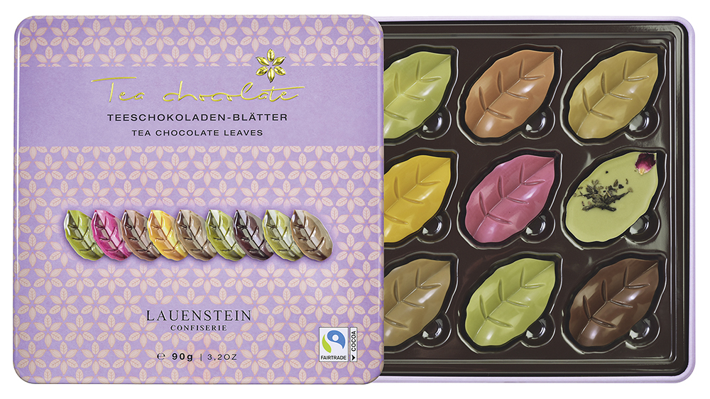 Our tea chocolates are fine compositions of the highest quality ingredients, such as the best white chocolate, slightly tart green tea, unmistakable spice of matcha, or refined with fruity-floral aromas of mango, lemon, corn and rose petals and much more. Just let yourself go and enjoy this overwhelming play of flavors with all your senses. Available in 10 different flavors, as a tablet or also in the Lauensteiner tea leaves tin. The Lauensteiner "Tea Leaves Tin" was awarded the Promotional Gift Award 2021 in the category Premium Product and was now voted number 1 of the Top Innovations 2021 at the International Sweets and Biscuits Fair ISM. The product convinced the jurors both in terms of taste, due to the very good balance of the various components, and in terms of its enjoyment. And the unusual product idea and its high-quality, appealing packaging also ultimately contributed to the victory.